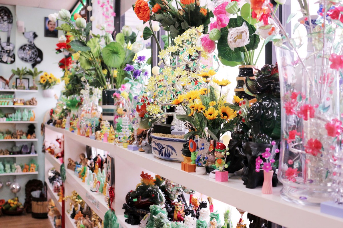 Gift Shop gồm đủ loại cẩm thạch, sách, báo, thuốc bổ, đèn Laser. Gia đình làm chủ với 10 năm kinh nghiệm về thạch và ngọc với đủ màu sắc và tự làm kiểu theo ý muốn.