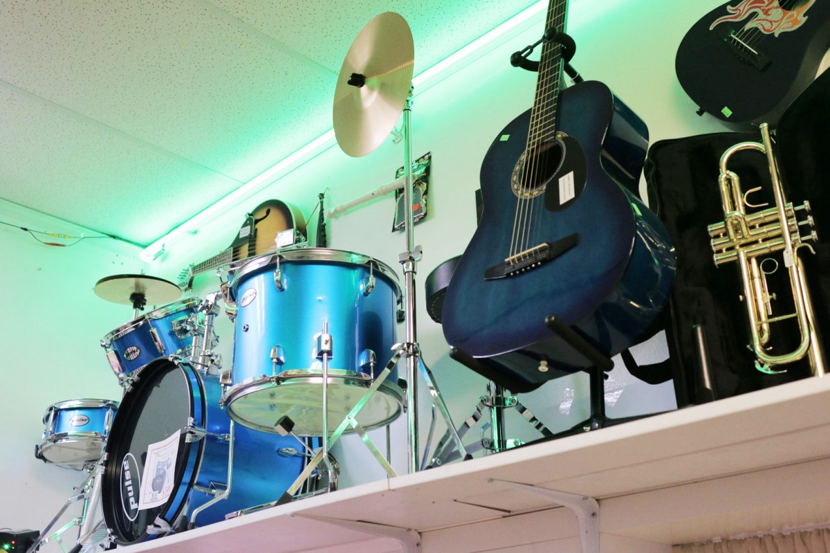 Nhạc cụ chơi âm nhạc, bộ trống, đàn, Guitar, Piano, sáo v.v...